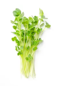 Description: Microgreens are vegetable greens (not to be confused with sprouts or shoots) harvested just after the cotyledon leaves have developed with one set of true leaves. They are used as a visual, flavor and texture enhancement.